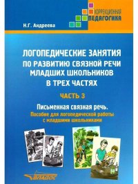 | Полное название книги | Н. Г. Андреева Логопедические занятия по развитию связной речи младших школьников. В 3-х частях. Часть 3: Письменная связная речь: пособие для логопедической работы с младшими школьникам |