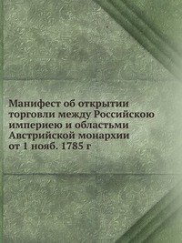 | Полное название книги | Коллектив авторов Манифест об открытии торговли между Российскою империею и областьми Австрийской монархии от 1 нояб. 1785 г |