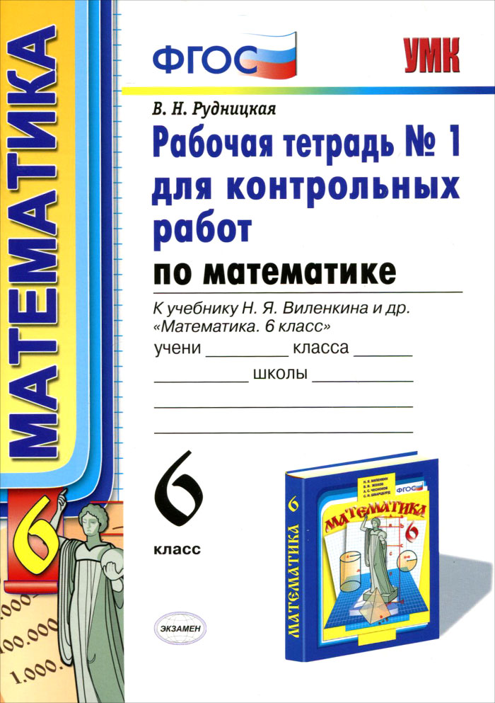 | Полное название книги | В. Н. Рудницкая Математика. 6 класс. Рабочая тетрадь №1 для контрольных работ. К учебнику Н. Я. Виленкина и др. "Математика. 6 класс" |