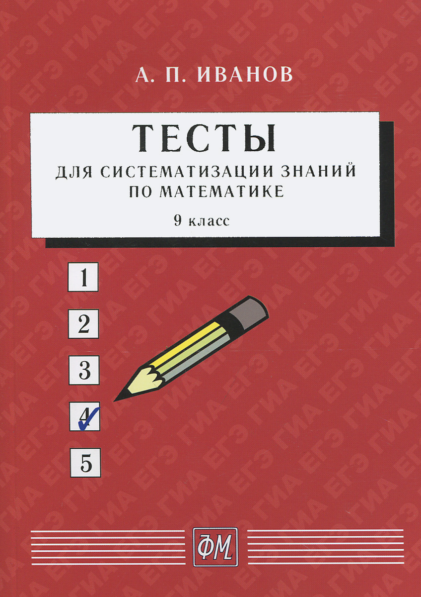 | Полное название книги | А. П. Иванов Математика. 9 класс. Тесты для систематизации знаний. Учебное пособие |