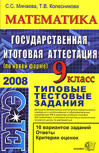 | Полное название книги | Т. В. Колесникова, С. С. Минаева Математика. 9 класс. Типовые тестовые задания |