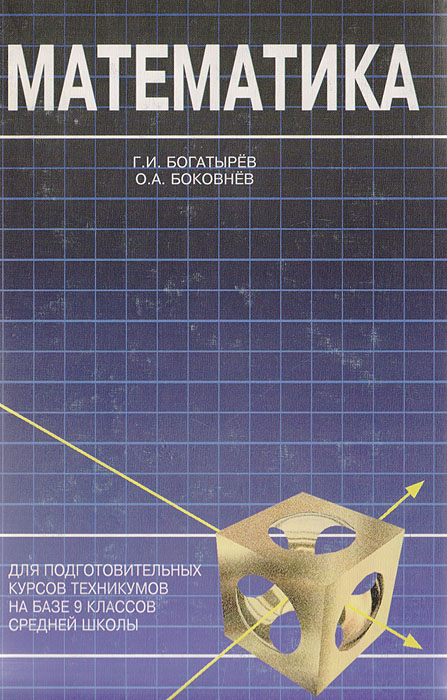 | Полное название книги | Г. И. Богатырев, О. А. Боковнев Математика. (Для подготовительных курсов техникумов на базе 9 класса средней школы) |