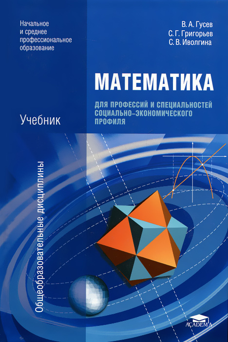 | Полное название книги | С. Г. Григорьев, В. А. Гусев Математика для профессий и специальностей социально-экономического профиля. 4-е изд., стер. Гусев В.А., Григорьев С.Г |