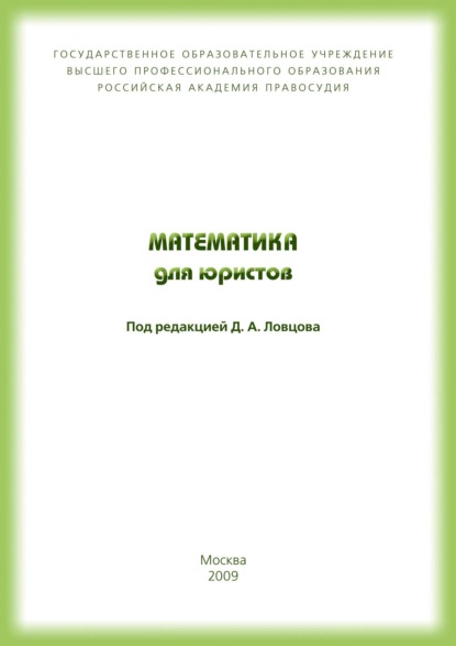 Подробная информация о книге «Математика для юристов Владимир Тимофеевич Королев, Дмитрий Анатольевич Ловцов, Владимир Васильевич Радионов, В. Ю. Квачко». Сайт не предоставляет возможности читать онлайн или скачать бесплатно книгу «Математика для юристов Владимир Тимофеевич Королев, Дмитрий Анатольевич Ловцов, Владимир Васильевич Радионов, В. Ю. Квачко».