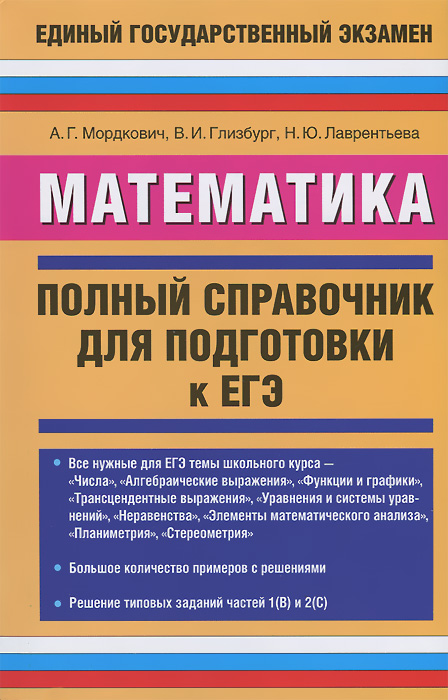 | Полное название книги | Н. Ю. Лаврентьева, А. Г. Мордкович, В. И. Глизбург Математика. Полный справочник для подготовки к ЕГЭ |