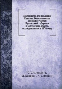 | Полное название книги | С. Симонович Материалы для геологии Кавказа. Геологическое описание частей Кутаисской губернии и Сухумского отдела, исследованных в 1876 году |