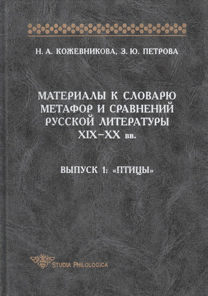 | Полное название книги | Зоя Юрьевна Петрова, Наталья Алексеевна Кожевникова Материалы к словарю метафор и сравнений русской литературы XIX-XX вв. Выпуск 1. Птицы |