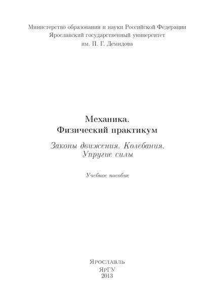 | Полное название книги | Коллектив авторов Механика. Физический практикум. Законы движения. Колебания. Упругие силы |