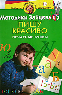 В странах, где почерк у населения покрасивей и поразборчивей, чем у нас, обучение письму начинают с крупных печатных букв. Оно, если задуматься, и правильно: пусть рука к орудию письма привлекает, к точности, к проведению прямых, скругленных, закругленных линий, овалов. Да и параллельному овладению чтением рисование печатных букв больше помогает. Через месяц-другой-третий легче и за пропись будет приняться. Это и многое другое вы найдете в книге Методики Зайцева: Пишу красиво. Печатные буквы. Для детей 4-5 лет (Н. А. Зайцев)