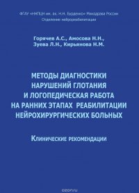 | Полное название книги | А. Горячев, Н. Кирьянова, Н. Амосова, Л. Зуева Методы диагностики нарушений глотания и логопедическая работа на ранних этапах реабилитации нейрохирургических больных |