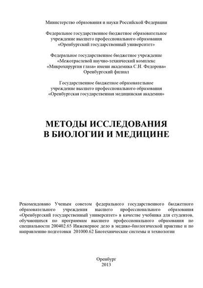 Подробная информация о книге «Методы исследования в биологии и медицине Коллектив авторов». Сайт не предоставляет возможности читать онлайн или скачать бесплатно книгу «Методы исследования в биологии и медицине Коллектив авторов».
