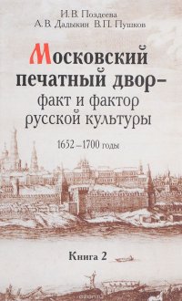 | Полное название книги | А. В. Дадыкина, В. П. Пушков, И. В. Поздеева Московский печатный двор - факт и фактор русской культуры. 1652-1700 годы. Исследования и публикации. В 3 книгах. Книга 2 |