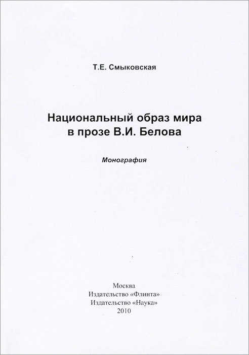| Полное название книги | Т. Е. Смыковская Национальный образ мира в прозе В. И. Белова |