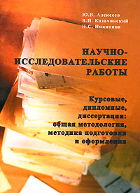 | Полное название книги | Н. С. Никитина, Ю. В. Алексеев, В. П. Казачинский Научно-исследовательские работы. Курсовые, дипломные, диссертации. Общая методология, методика подготовки и оформления |