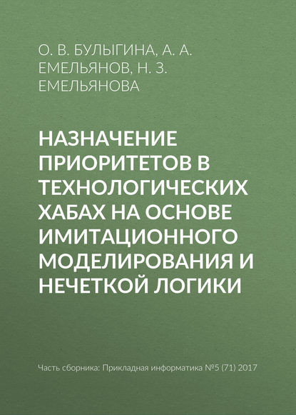 | Полное название книги | О. В. Булыгина, А. А. Емельянов, Наталья Захаровна Емельянова Назначение приоритетов в технологических хабах на основе имитационного моделирования и нечеткой логики |