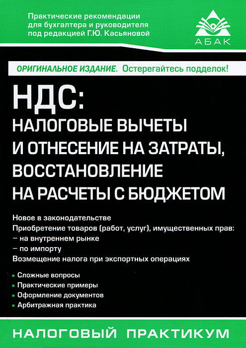 | Полное название книги | Г. Ю. Касьянова НДС. Налоговые вычеты и отнесение на затраты, восстановление на расчеты с бюджетом |