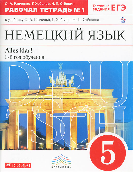 | Полное название книги | Н. П. Степкин, О. А. Радченко, Г. Хебелер Немецкий язык. 5 класс. 1 год обучения. Рабочая тетрадь №1 |