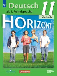 Учебник для 11 класса серии "Горизонты", предназначенный для школ с изучением немецкого языка как второго иностранного на базовом и углублённом уровнях, завершает этап обучения немецкому языку в школе. 11 класс - седьмой год обучения. Серия "Горизонты" - это совместный проект издательства "Просвещение" и издательства Cornelsen (г. Берлин). В авторском коллективе - авторы КИМов по немецкому языку, разработчики материалов ЕГЭ: Фурманова С. Л., Бажанов А. Е. Учебнике получил положительные заключения РАО и РКС на соответствие требованиям Федерального государственного образовательного стандарта среднего (полного) общего образования. Материал учебника рассчитан на два часа в неделю и более. Современная лексика, живые ситуации общения, проектная работа дают возможность учителю проводить уроки с максимальной эффективностью в группах с любым уровнем обученности. Также в пособии представлены задания по подготовке к обязательному государственному экзамену ЕГЭ. В конце каждой второй главы размещён блок "Готовимся к экзамену". Материалы учебника дают возможность учащимся выработать индивидуальную стратегию подготовки к сдаче ЕГЭ, а также достичь по окончанию 11 класса уровня B1 общеевропейской компетенции владения иностранным языком.