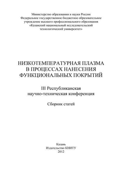| Полное название книги | Коллектив авторов, Низкотемпературная плазма в процессах нанесения функциональных покрытий |