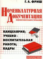 | Полное название книги | Г. Л. Фриш, авт. -сост. Номенклатурная документация общеобразовательного учреждения: канцелярия; учебно-воспитательная работа; кадры |