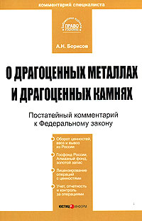 | Полное название книги | А. Н. Борисов О драгоценных металлах и драгоценных камнях. Постатейный комментарий к Федеральному закону |