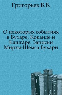 | Полное название книги | В. В. Григорьев О некоторых событиях в Бухаре, Коканде и Кашгаре. Записки Мирзы-Шемса Бухари |