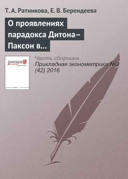Подробная информация о книге «О проявлениях парадокса Дитона–Паксон в потреблении российских домохозяйств Татьяна Анатольевна Ратникова, Екатерина Валерьевна Берендеева». Сайт не предоставляет возможности читать онлайн или скачать бесплатно книгу «О проявлениях парадокса Дитона–Паксон в потреблении российских домохозяйств Татьяна Анатольевна Ратникова, Екатерина Валерьевна Берендеева».