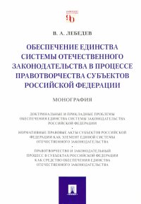 | Полное название книги | Валериан Алексеевич Лебедев Обеспечение единства системы отечественного законодательства в процессе правотворчества субъектов РФ |