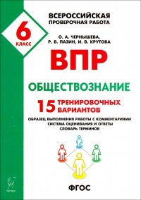 | Полное название книги | Ольга Александровна Чернышева, Роман Викторович Пазин, Ирина Владимировна Крутова Обществознание. 6 класс. Подготовка к ВПР. 15 тренировочных вариантов. Учебно-методическое пос. ФГОС |