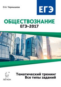 | Полное название книги | О. А. Чернышева Обществознание. ЕГЭ-2017. Тематический тренинг. Теория, все типы заданий. Учебно-методическое пособие |