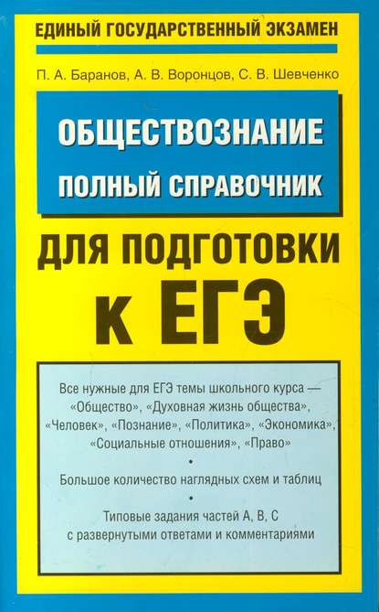 Подробная информация о книге «Обществознание. Полный справочник для подготовки к ЕГЭ Александр Викторович Воронцов, Сергей Владимирович Шевченко, Петр Анатольевич Баранов». Сайт не предоставляет возможности читать онлайн или скачать бесплатно книгу «Обществознание. Полный справочник для подготовки к ЕГЭ Александр Викторович Воронцов, Сергей Владимирович Шевченко, Петр Анатольевич Баранов».