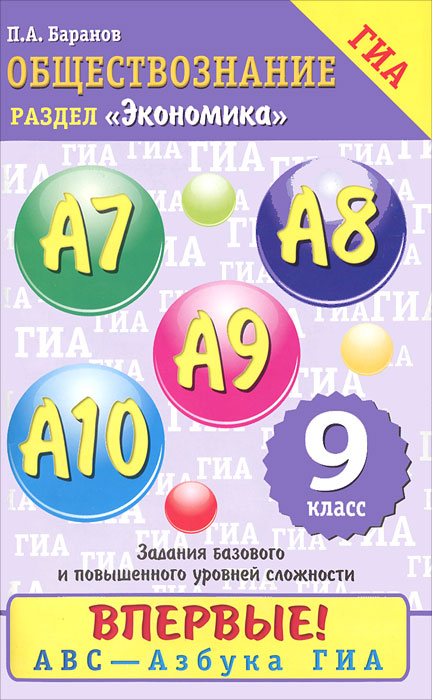 | Полное название книги | П. А. Баранов Обществознание. Раздел экономика. Задания базового и повышенного уровней сложности: А7-А10. 9 класс |
