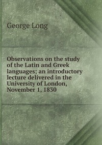 | Полное название книги | George Long Observations on the study of the Latin and Greek languages; an introductory lecture delivered in the University of London, November 1, 1830 |