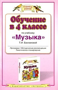 | Полное название книги | Т. И. Бакланова Обучение в 4 классе по учебнику "Музыка" Т. И. Баклановой |