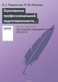 | Полное название книги | Лаврентьев В. С., Пивовар М. Ю. Оценивание профессиональной подготовленности на основе интеграла Шоке |