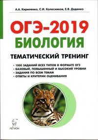 | Полное название книги | С. И. Колесников, А. А. Кириленко, Е. В. Даденко ОГЭ-2019. Биология. Тематический тренинг |