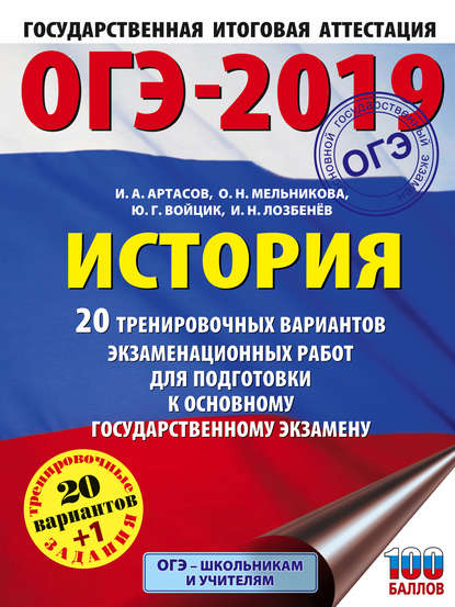 Подробная информация о книге «ОГЭ-2019. История. 20 тренировочных вариантов экзаменационных работ для подготовки к основному государственному экзамену Игорь Анатольевич Артасов, Игорь Николаевич Лозбенев, Юлия Григорьевна Войцик, Ольга Николаевна Мельникова». Сайт не предоставляет возможности читать онлайн или скачать бесплатно книгу «ОГЭ-2019. История. 20 тренировочных вариантов экзаменационных работ для подготовки к основному государственному экзамену Игорь Анатольевич Артасов, Игорь Николаевич Лозбенев, Юлия Григорьевна Войцик, Ольга Николаевна Мельникова».