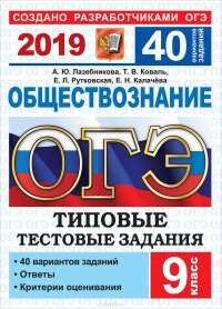 | Полное название книги | А. Ю. Лазебникова, Е. Н. Калачева ОГЭ 2019. Обществознание. Типовые тестовые задания. 40 вариантов заданий |