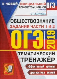 | Полное название книги | Е. Н. Калачева ОГЭ 2019. Тематический тренажер. Обществознание. Задания части 1 и 2 |