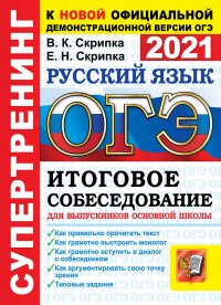 | Полное название книги | В. К. Скрипка ОГЭ 2021. Русский язык. Итоговое собеседование для выпускников основной школы. Супертренинг |