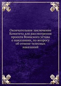| Полное название книги | Коллектив авторов Окончательное заключение Комитета для рассмотрения проекта Воинского устава о наказаниях, по вопросу об отмене телесных наказаний |