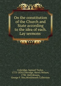 | Полное название книги | Samuel Taylor Coleridge On the constitution of the Church and State according to the idea of each. Lay sermons |