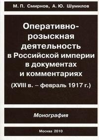 | Полное название книги | М. П. Смирнов, А. Ю. Шумилов Оперативно-розыскная деятельность в Российской империи в документах и комментариях (XVIII в. - февраль 1917 г.) |