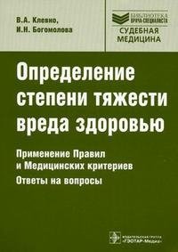 | Полное название книги | В. А. Клевно, И. Н. Богомолова Определение степени тяжести вреда здоровью. Применение Правил и Медицинских критериев. Ответы на вопросы |