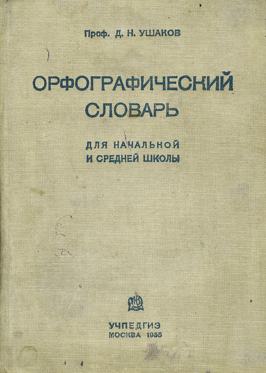 В настоящем словаре, предназначенном для школьников, даются наиболее распространенные и общепринятые написания слов. До утверждения Нарком-просом вырабатываемой унификации противоречивых написаний, довольно многочисленных в нашей орфографии, проводить какую-либо унификацию в данном небольшом словарике было бы преждевременно и нецелесообразно. Это и многое другое вы найдете в книге Орфографический словарь. Для начальной и средней школы (Д. Н. Ушаков)