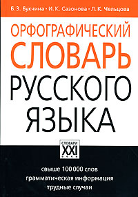 | Полное название книги | Б. З. Букчина, И. К. Сазонова, Л. К. Чельцова Орфографический словарь русского языка |