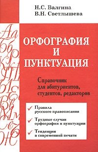 | Полное название книги | В. Н. Светлышева, Н. С. Валгина Орфография и пунктуация. Справочник для абитуриентов, студентов, редакторов |