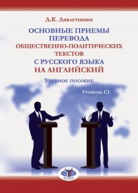 | Полное название книги | Д. К. Давлетшина Основные приемы перевода общественно-политических текстов с русского языка на английский. Учебное пособие. Уровень С1 |