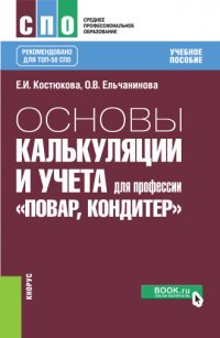 | Полное название книги | О. В. Ельчанинова, Е. И. Костюкова Основы калькуляции и учета для профессии "Повар-кондитер". Учебное пособие |