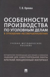 | Полное название книги | Татьяна Владимировна Орлова Особенности производства по уголовным делам в отношении несовершеннолетних. Учебно-методическое пособие |